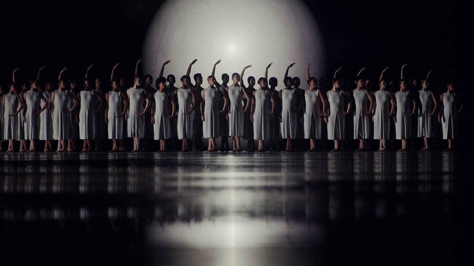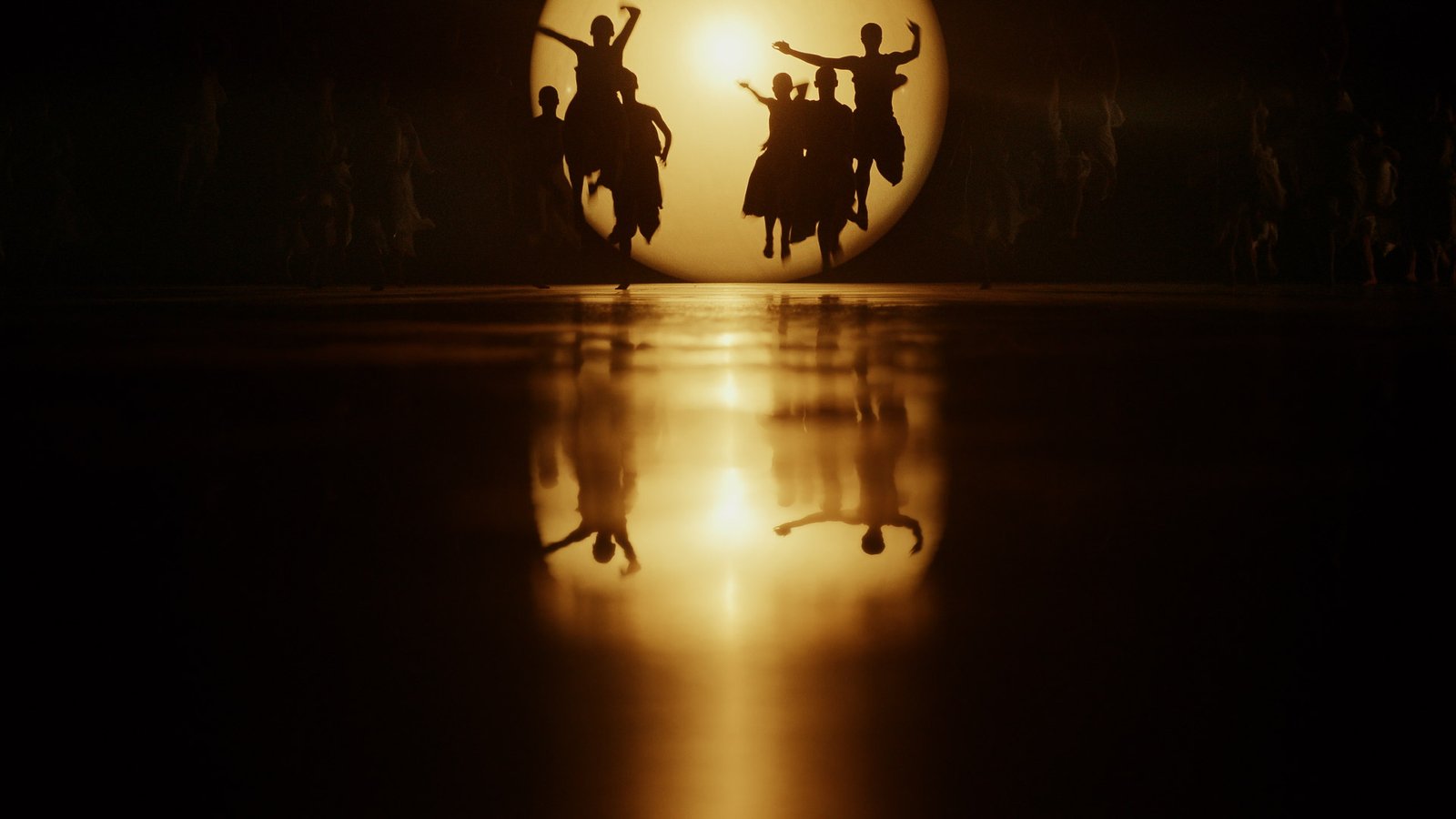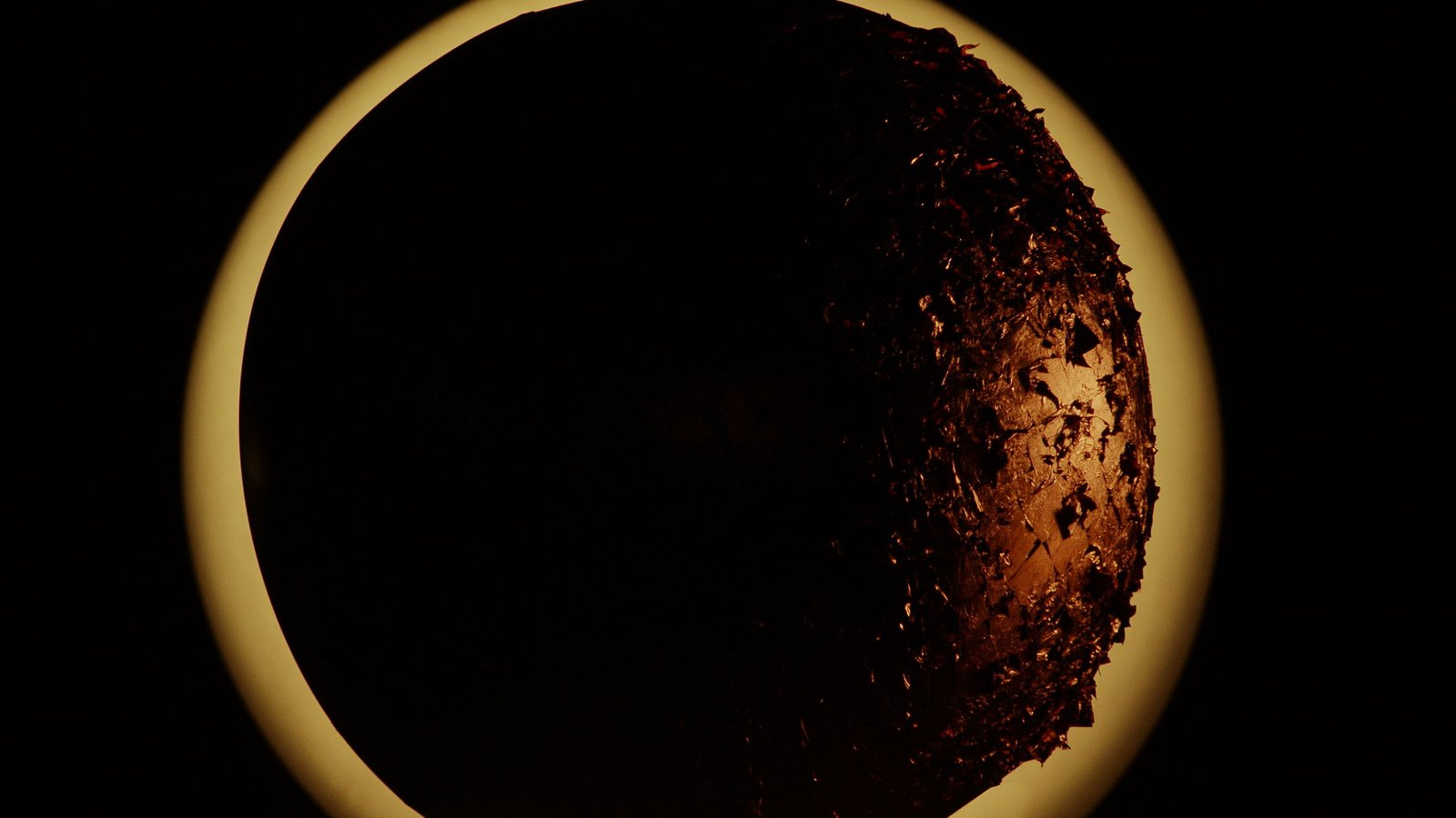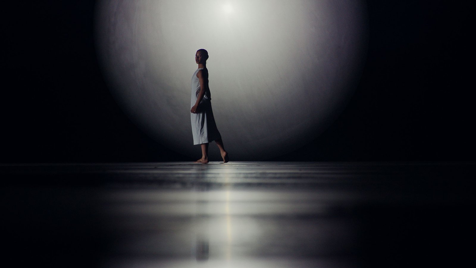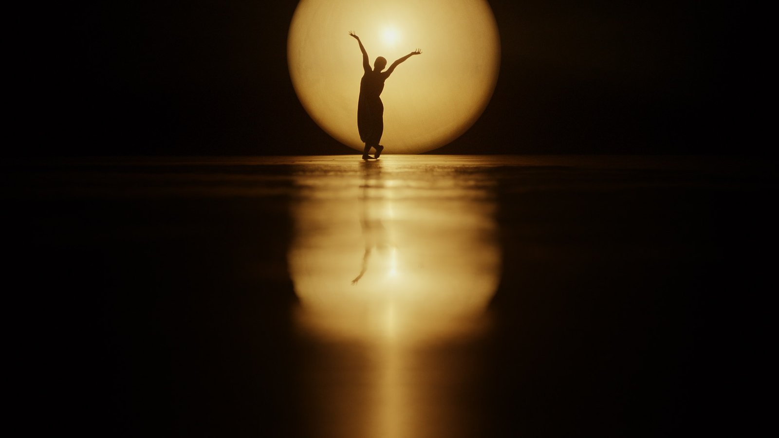 eclipse-inspired backdrop, contrasting fluid ensemble