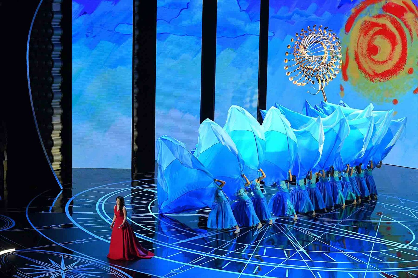 Choreographed for the 89th Annual Academy Awards, this performance featured Auli’i Cravalho and Lin-Manuel Miranda in a live rendition of Moana’s hit song “How Far I’ll Go.” Dancers used massive hand-held silk props to create dynamic, shape-shifting visuals across the stage—evoking ocean swells, blooming flowers, and sails in sync with the song’s emotional arc. The result was a vivid, kinetic backdrop that brought Polynesian mythology to life in a modern, theatrical context.